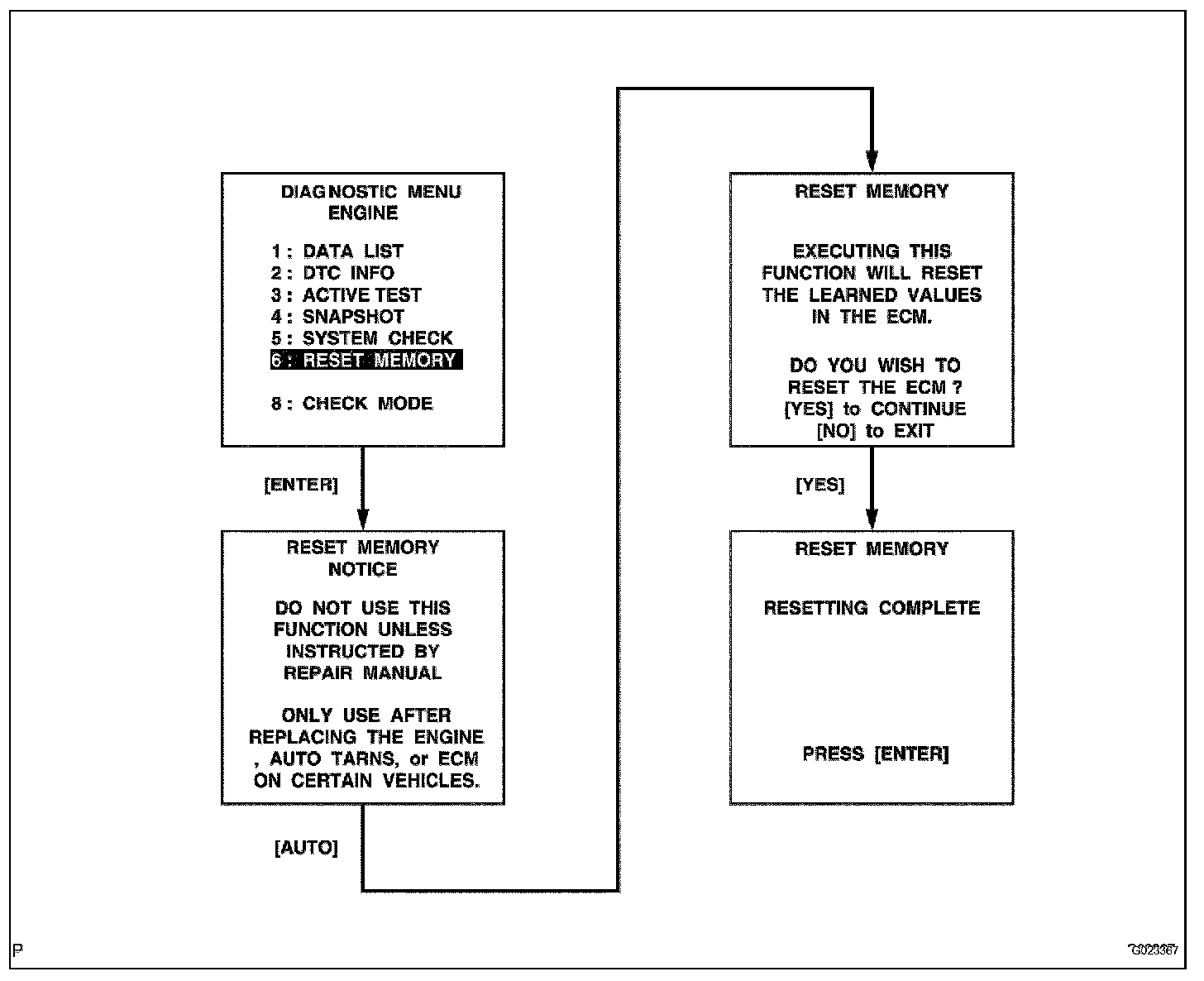 ^ Perform the RESET MEMORY (AT initialization) when replacing the automatic transaxle assembly, engine assembly or ECM.