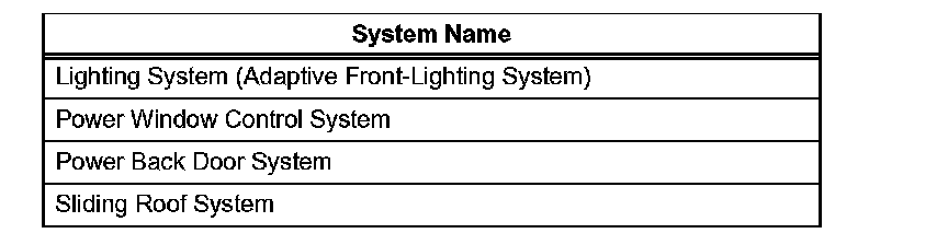 NOTICE: When the negative (-) battery cable is disconnected, initialize the systems listed in the table after the cable is reconnected.