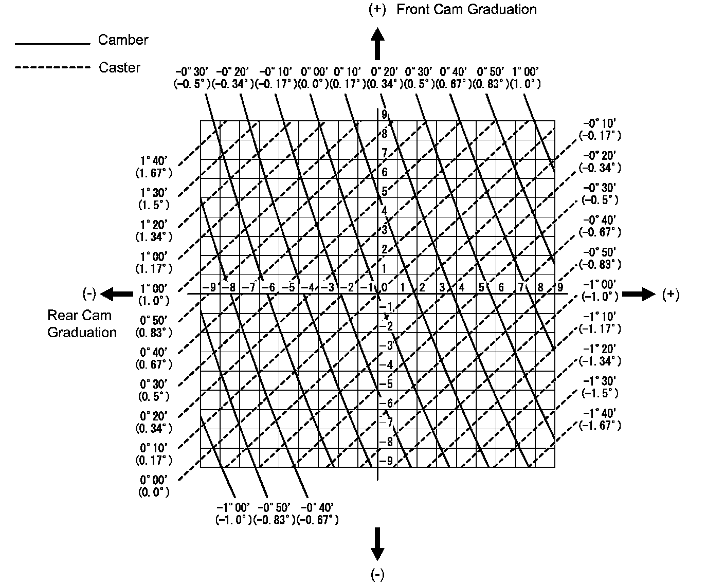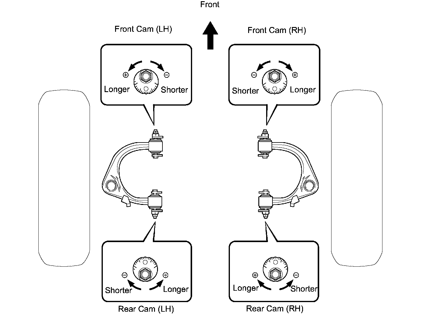 b. Adjust the camber and caster using front and/or rear adjusting cams.