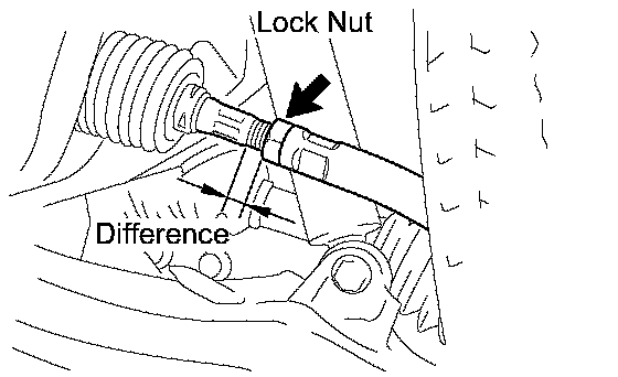 If the right and left inside wheel angles differ from the specified value, check the right and left rack end lengths.