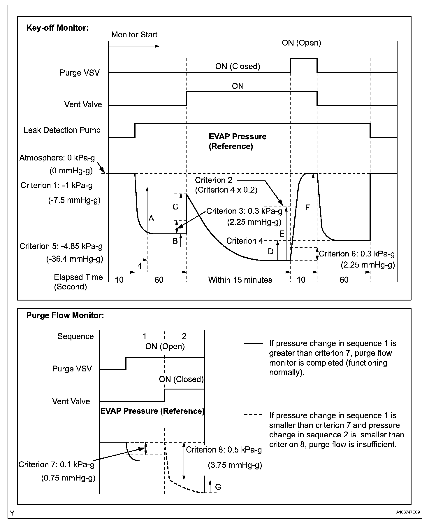 While the engine is running and the purge Vacuum Switching Valve (VSV) is ON (open), the ECM monitors the purge flow by measuring the EVAP pressure change. If negative pressure is not created, the ECM begins the 2nd monitor.