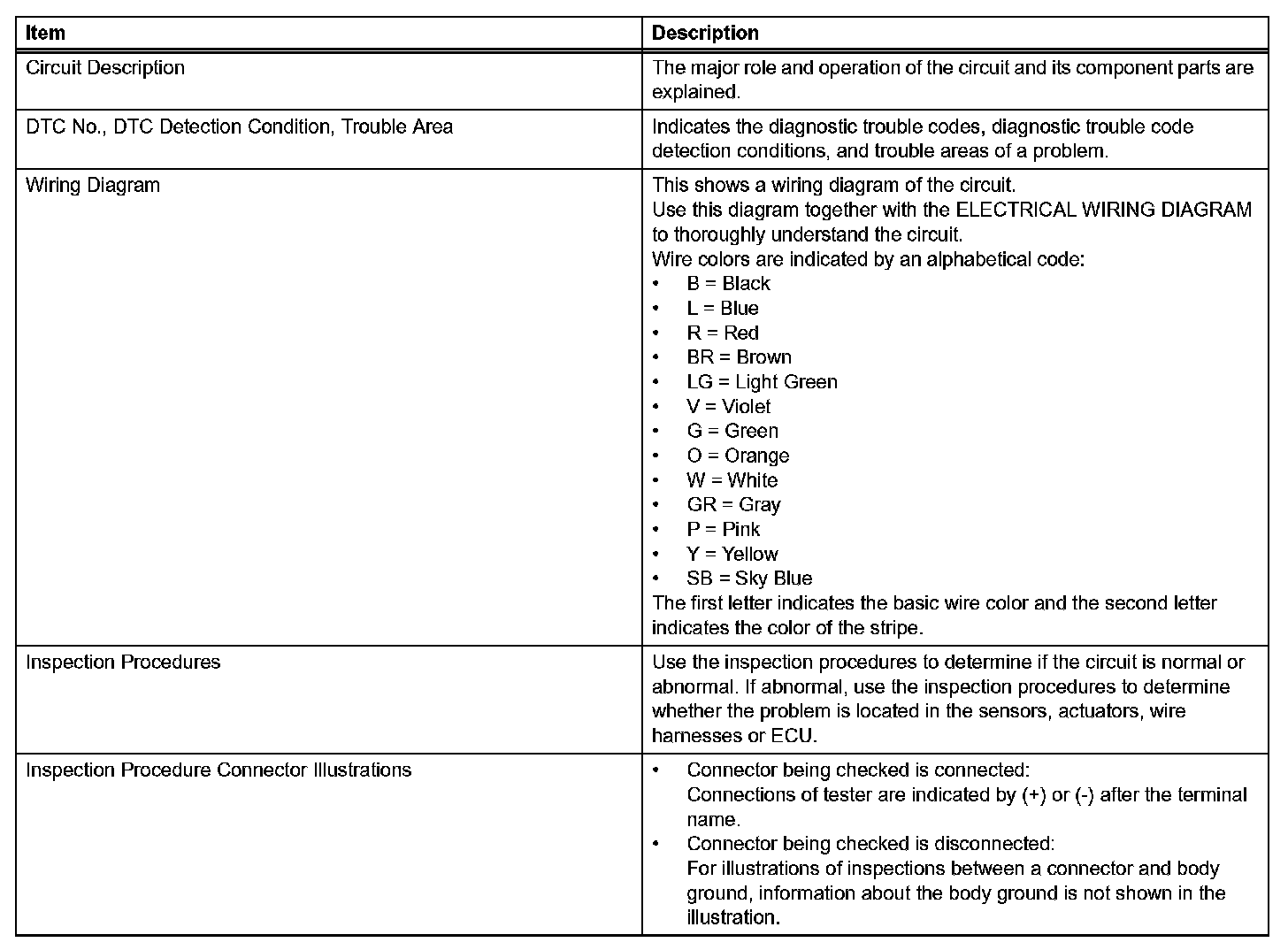 A description of the main areas of each circuit inspection is given.