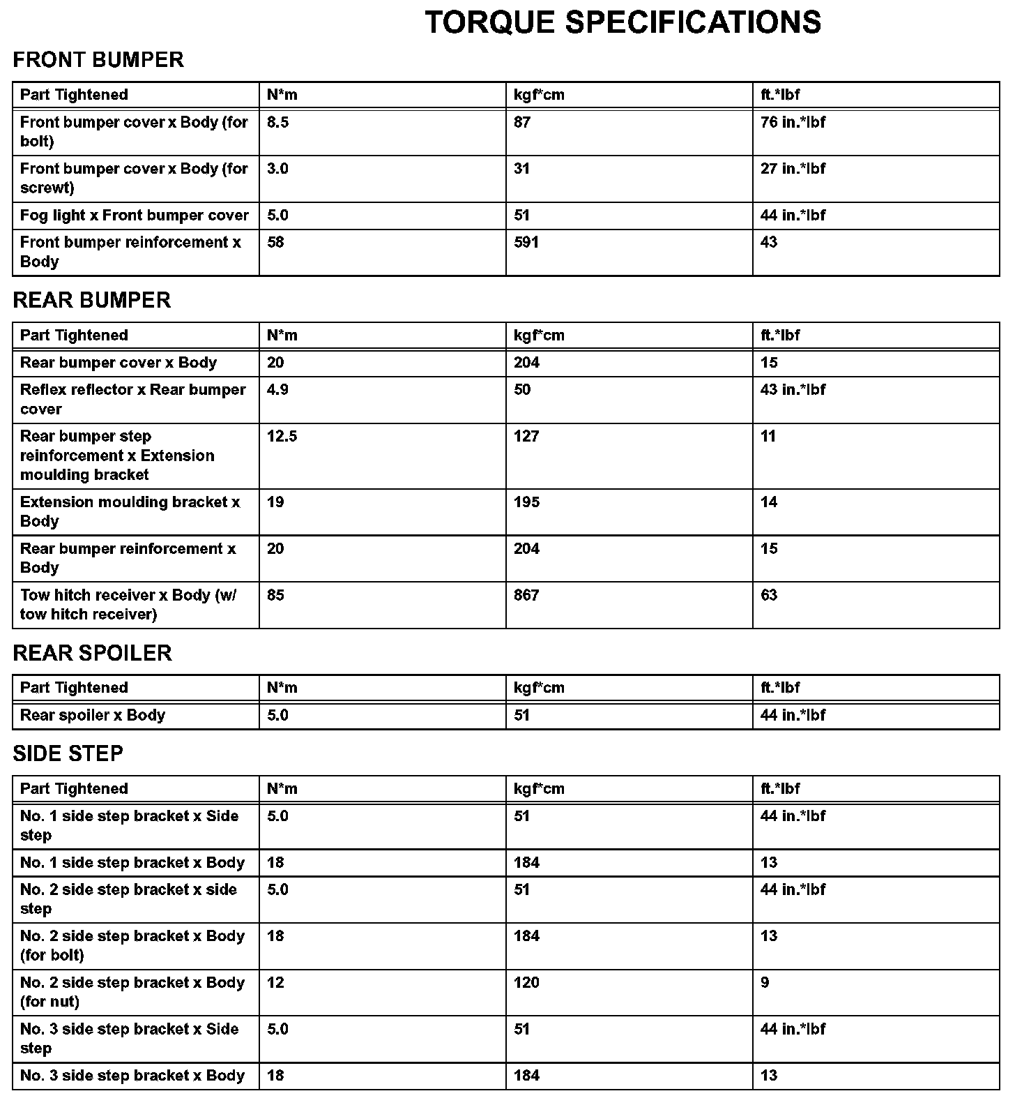 Exterior - Torque Specifications: