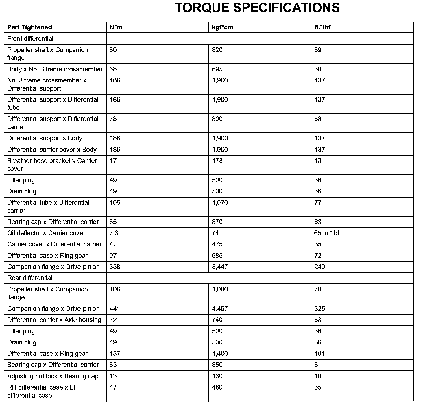 Differential - Torque Specifications: