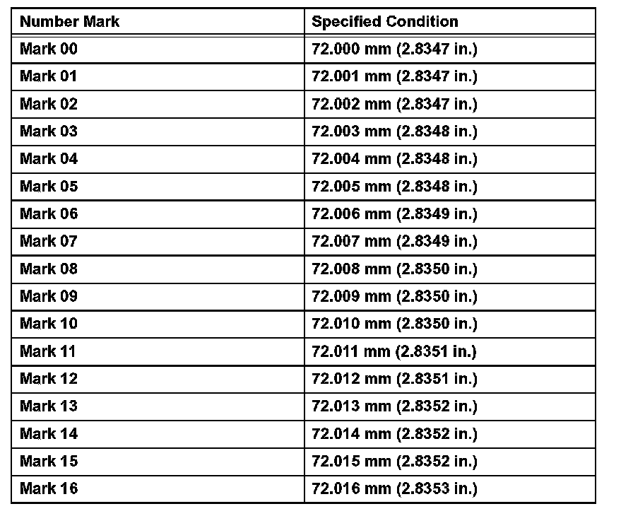 Diameter 66.988 to 67.000 mm (2.6373 to 2.6378 inch)