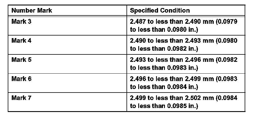 Thrust Washer Thickness 2.440 to 2.490 mm (0.0961 to 0.0980 inch)