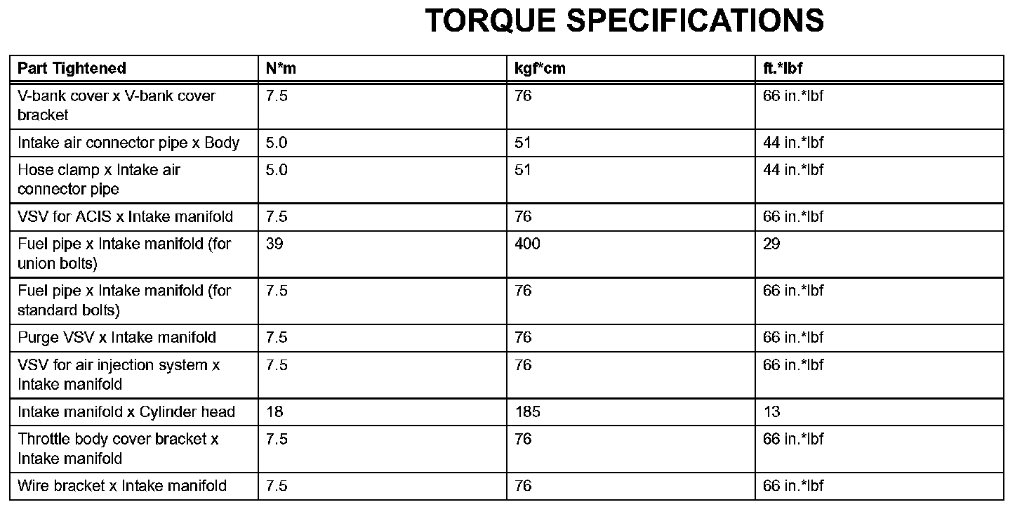 Intake - Torque Specifications: