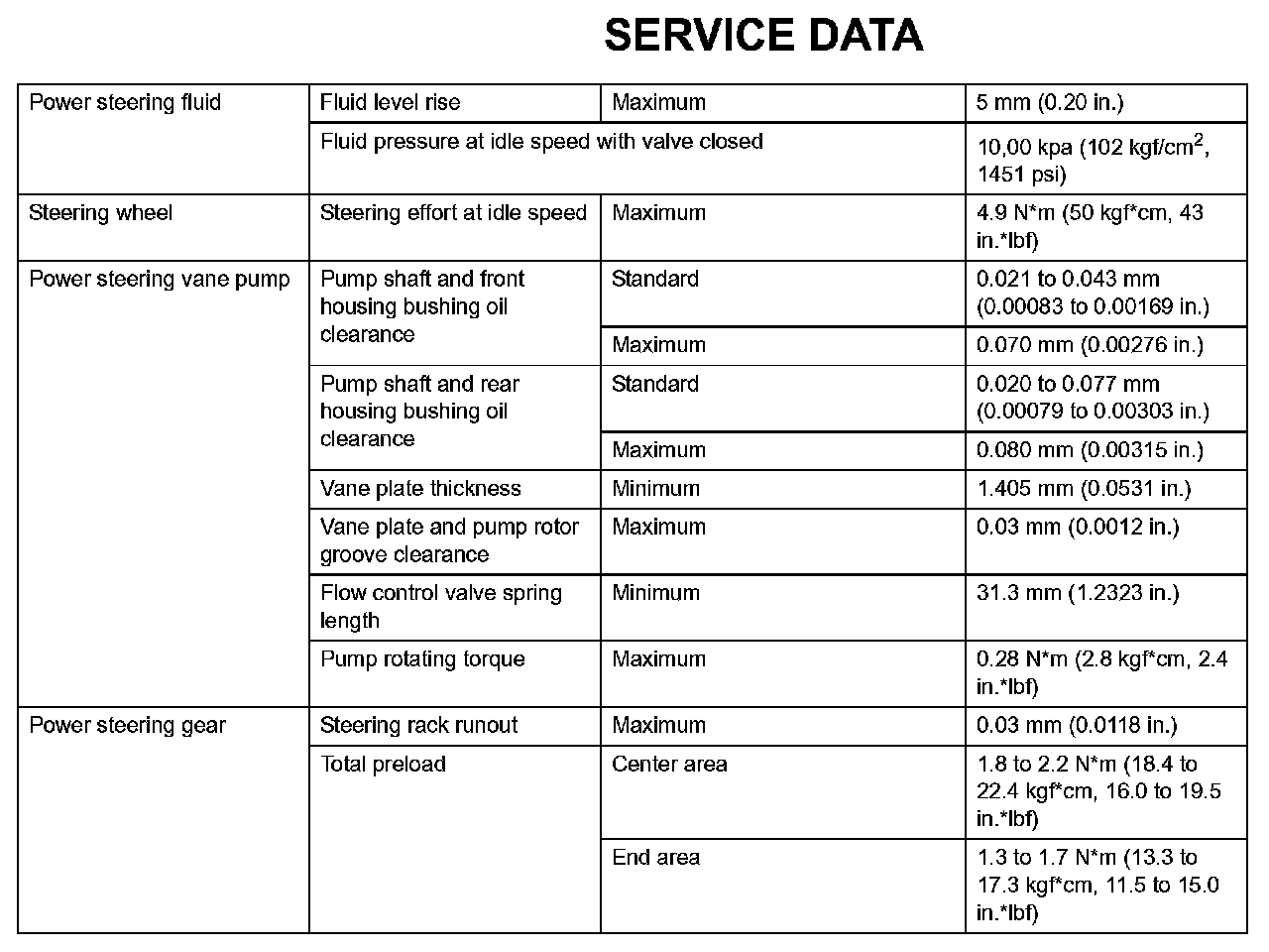 Power Steering - Service Data: