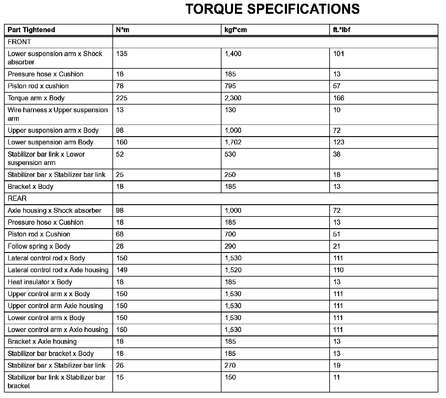 Suspension - Torque Specifications: