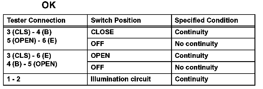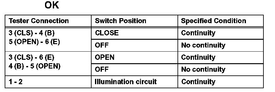 REAR QUARTER WINDOW CONTROL SWITCHINSPECTION