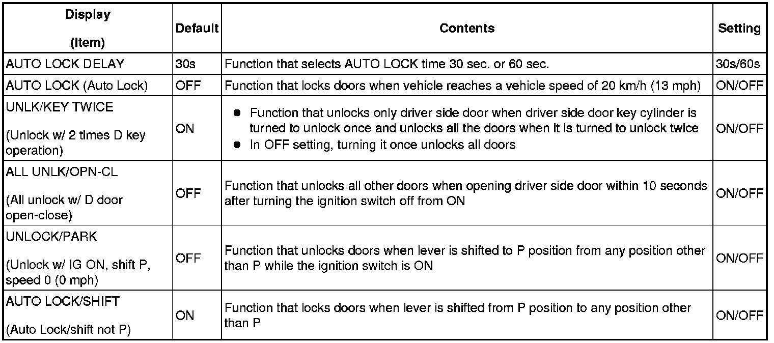 DOOR LOCK: POWER DOOR LOCK CONTROL SYSTEM: CUSTOMIZE PARAMETERS