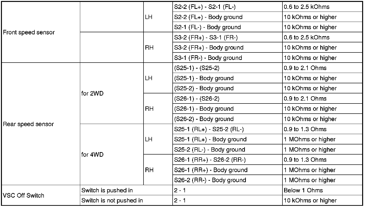 SERVICE SPECIFICATIONS: BRAKE CONTROL: SERVICE DATA