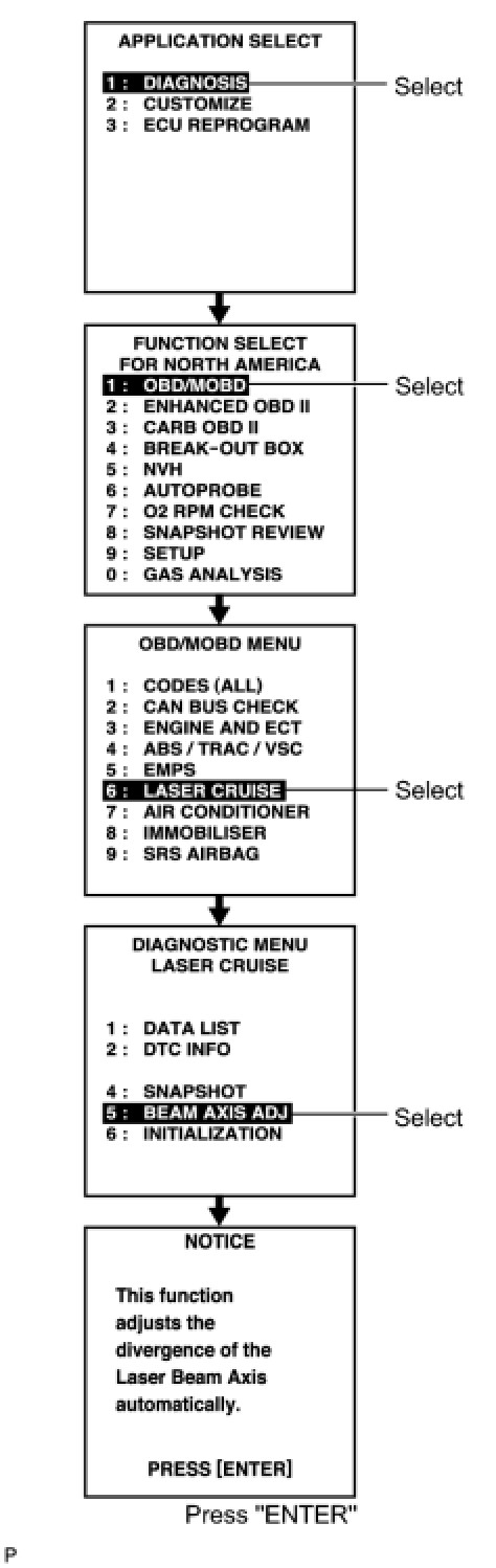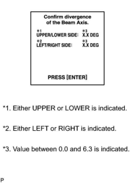 - Pressing the ''ENTER'' key will make the ECM transfer to BEAM AXIS ADJUSTMENT MODE.