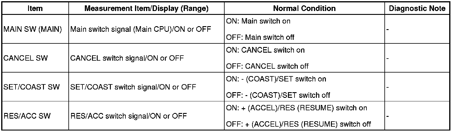 (c) Check the DATA LIST for proper functioning of the cruise control main switch.