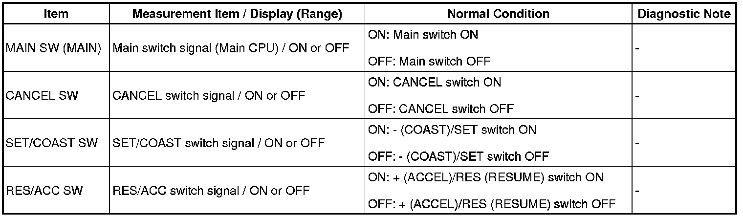 CRUISE CONTROL: DYNAMIC LASER CRUISE CONTROL SYSTEM: Cruise Control Switch Circuit