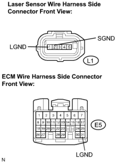 2. CHECK HARNESS AND CONNECTOR (LASER SENSOR - ECM AND BODY GROUND)