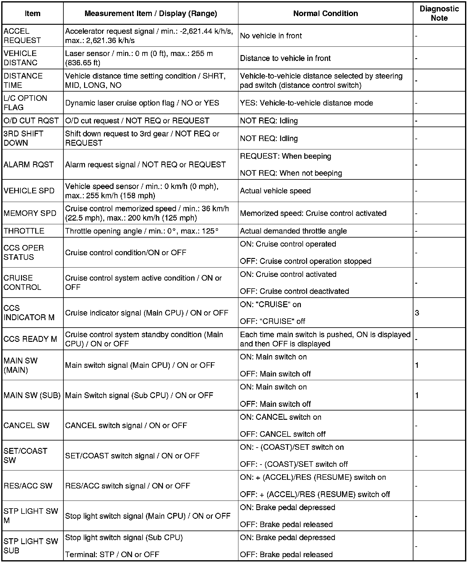 CRUISE CONTROL: DYNAMIC LASER CRUISE CONTROL SYSTEM: DATA LIST / ACTIVE TEST
