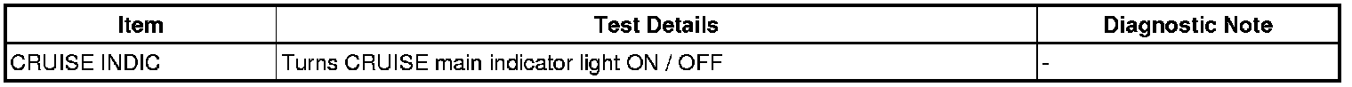 - 1 is OK, but CRUISE main indicator light does not illuminate -> Cruise main indicator light, wire harness, or ECM failure