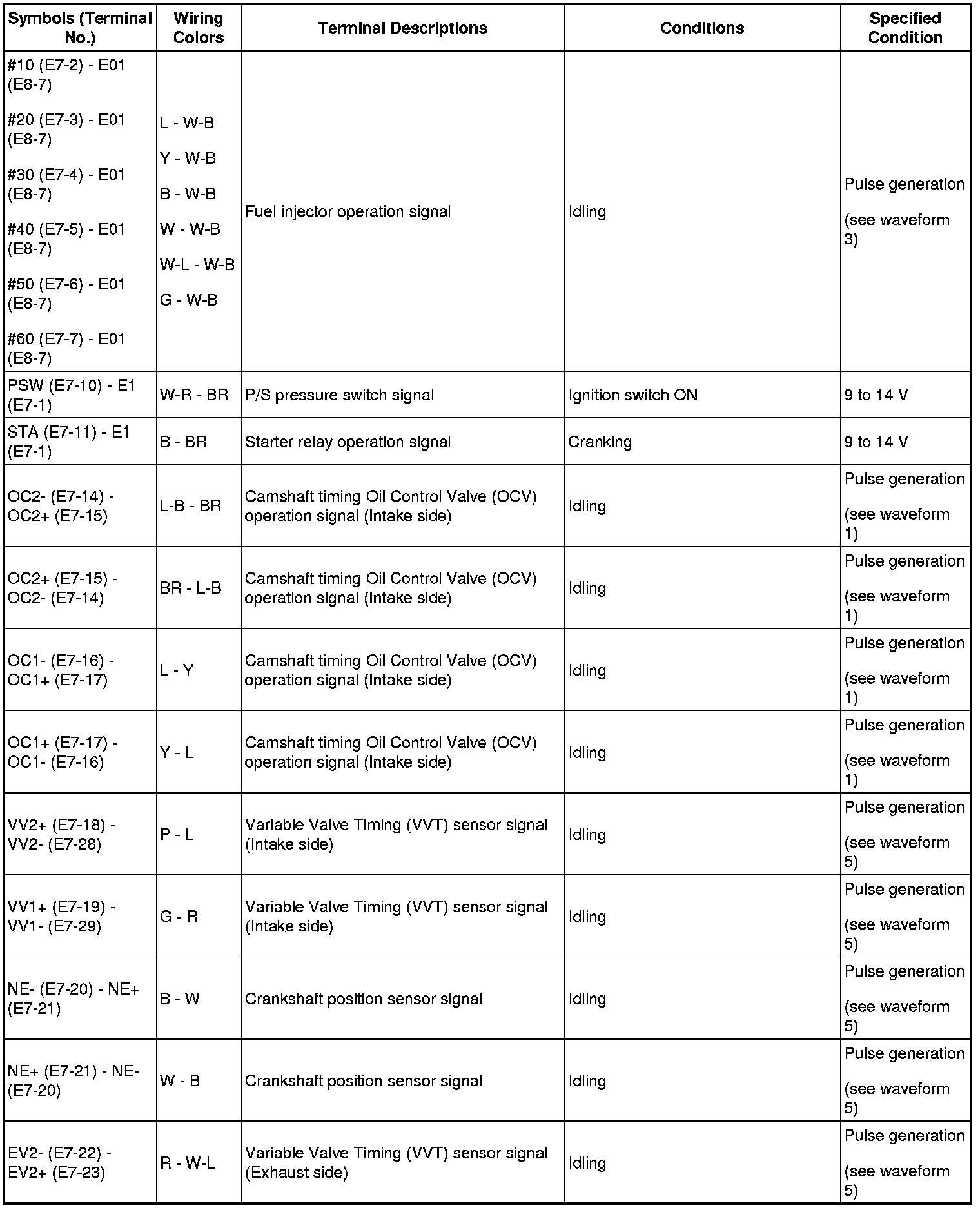 HINT: If the waveform is not similar to that shown in the illustration, check the waveform again after idling for 10 minutes or more.
