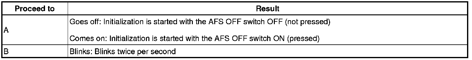 (a) When the initialization of the steering sensor signal is completed normally, the AFS OFF indicator light goes off, comes on, or blinks depending on the specific condition 3 second after the indicator light goes off.