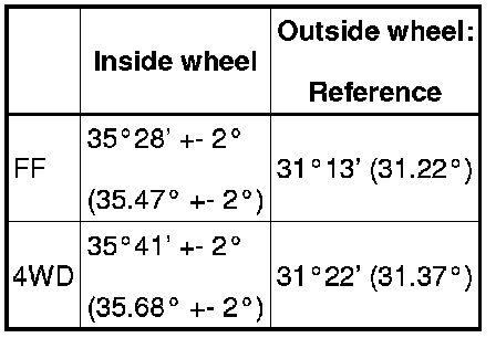 If the right and left inside wheel angles differ from the specified value, check the right and left rack end lengths.