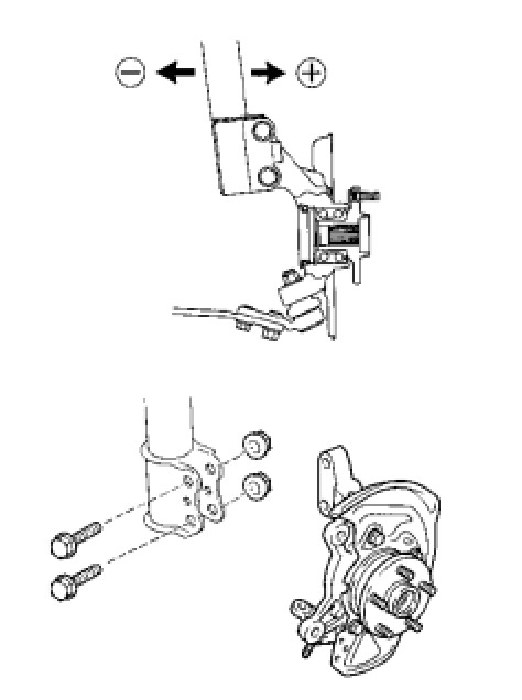 If the camber is not within the specified range, estimate how much additional camber adjustment will be required, and select the camber adjusting bolt.