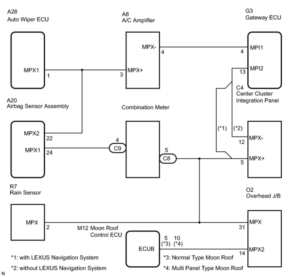 - Sliding roof control ECU (Moon roof control ECU)