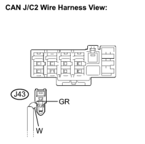 (b) Disconnect the CAN main bus wire connector (J43) from the wiring harness connector (CAN J/C2).
