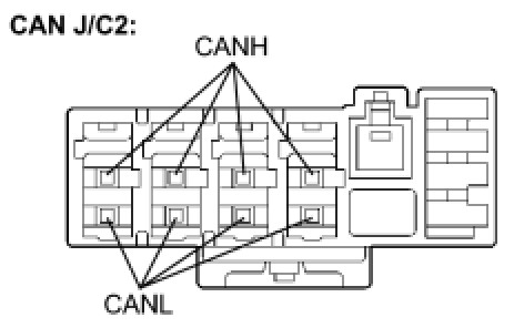 HINT: Identify the connector to be checked by its color of the wire and shape of the junction on the CAN J/C because the locations of the connectors to the CAN J/C are confusing.