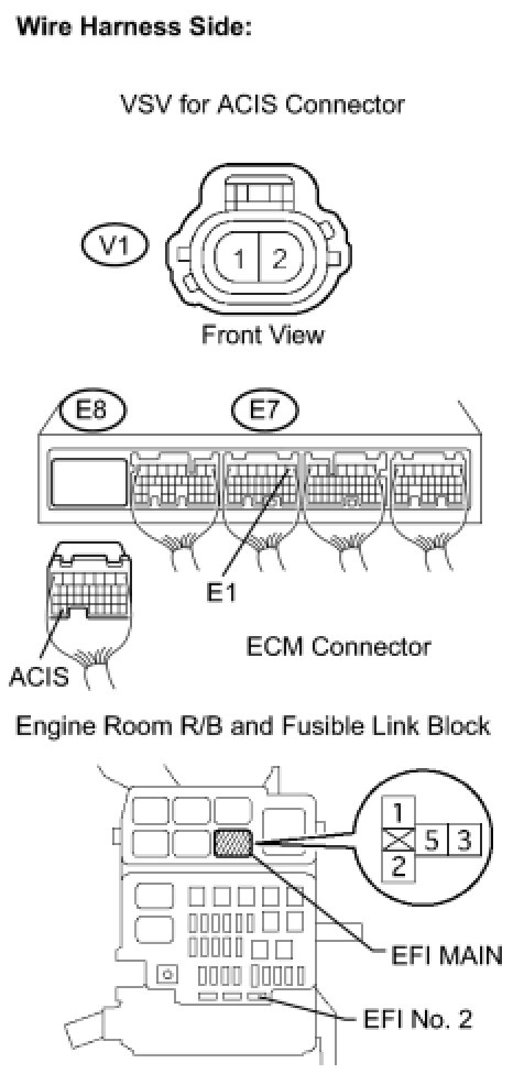 (c) Check the wire harness between the VSV for ACIS connector and EFI MAIN relay.