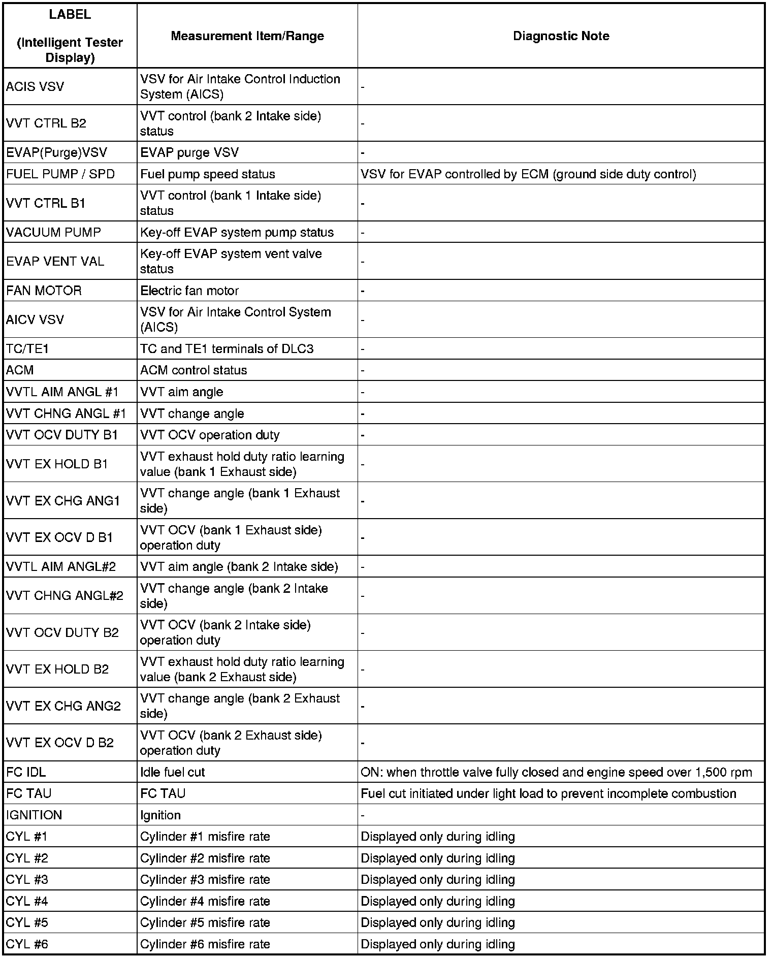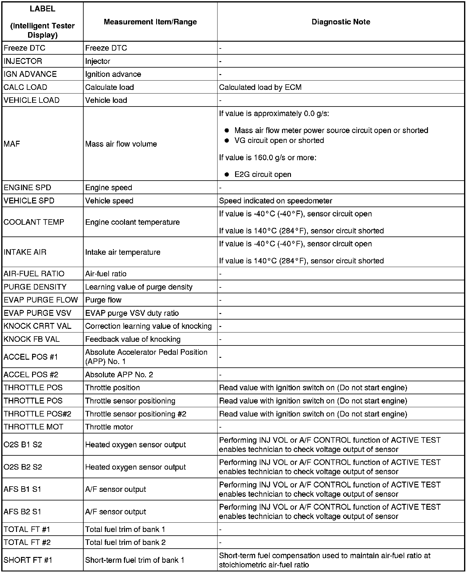 2GR-FE ENGINE CONTROL SYSTEM: SFI SYSTEM: FREEZE FRAME DATA