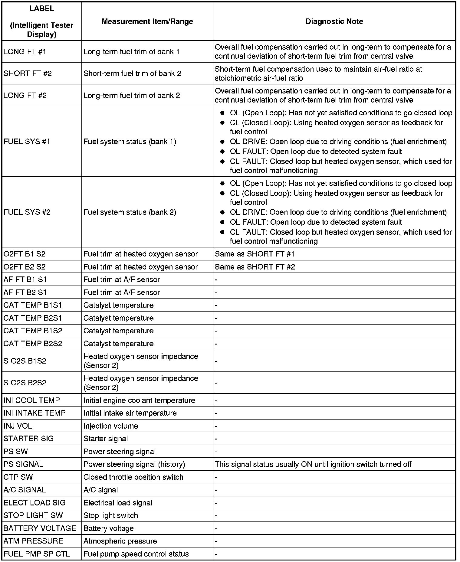 (a) The ECM records vehicle and driving condition information as freeze frame data the moment a DTC is stored. When troubleshooting, freeze frame data can be helpful in determining whether the vehicle was running or stopped, whether the engine was warmed up or not, whether the air-fuel ratio was lean or rich, as well as other data recorded at the time of a malfunction.
