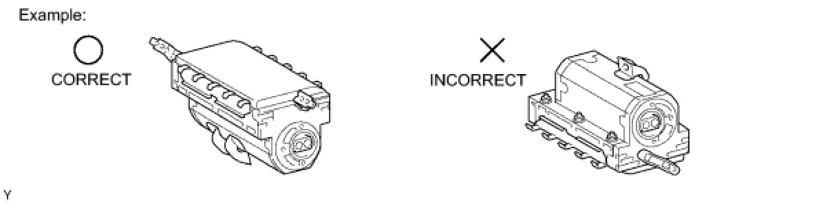 (1) Always place a removed or new knee airbag assembly with the airbag inflation direction facing upward. Placing the airbag assembly with the airbag inflation direction facing downward could cause a serious accident if the airbag inflates.