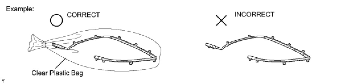 (1) Always place a removed or new curtain shield airbag assembly in a clear plastic bag, and keep it in a safe place.