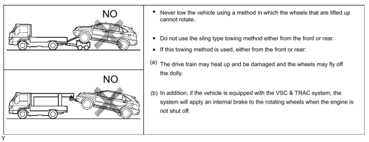 The towing methods shown below are dangerous and can damage the vehicle, so do not use them.