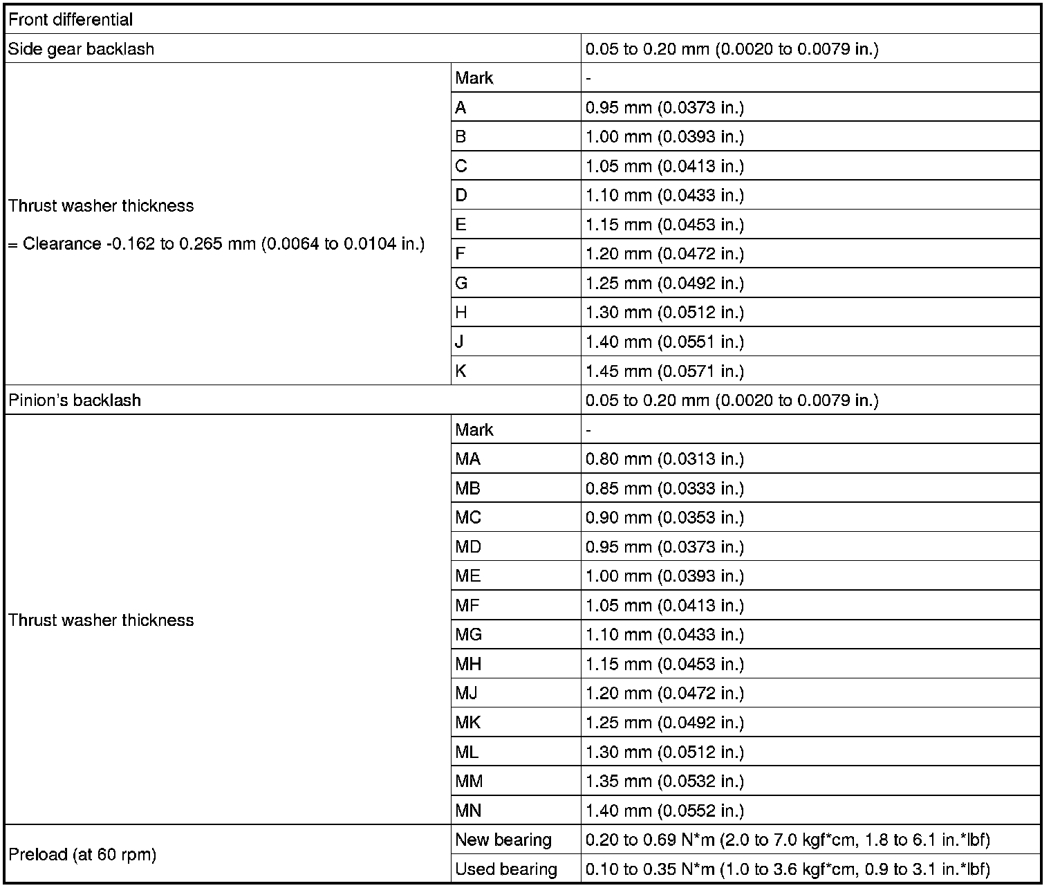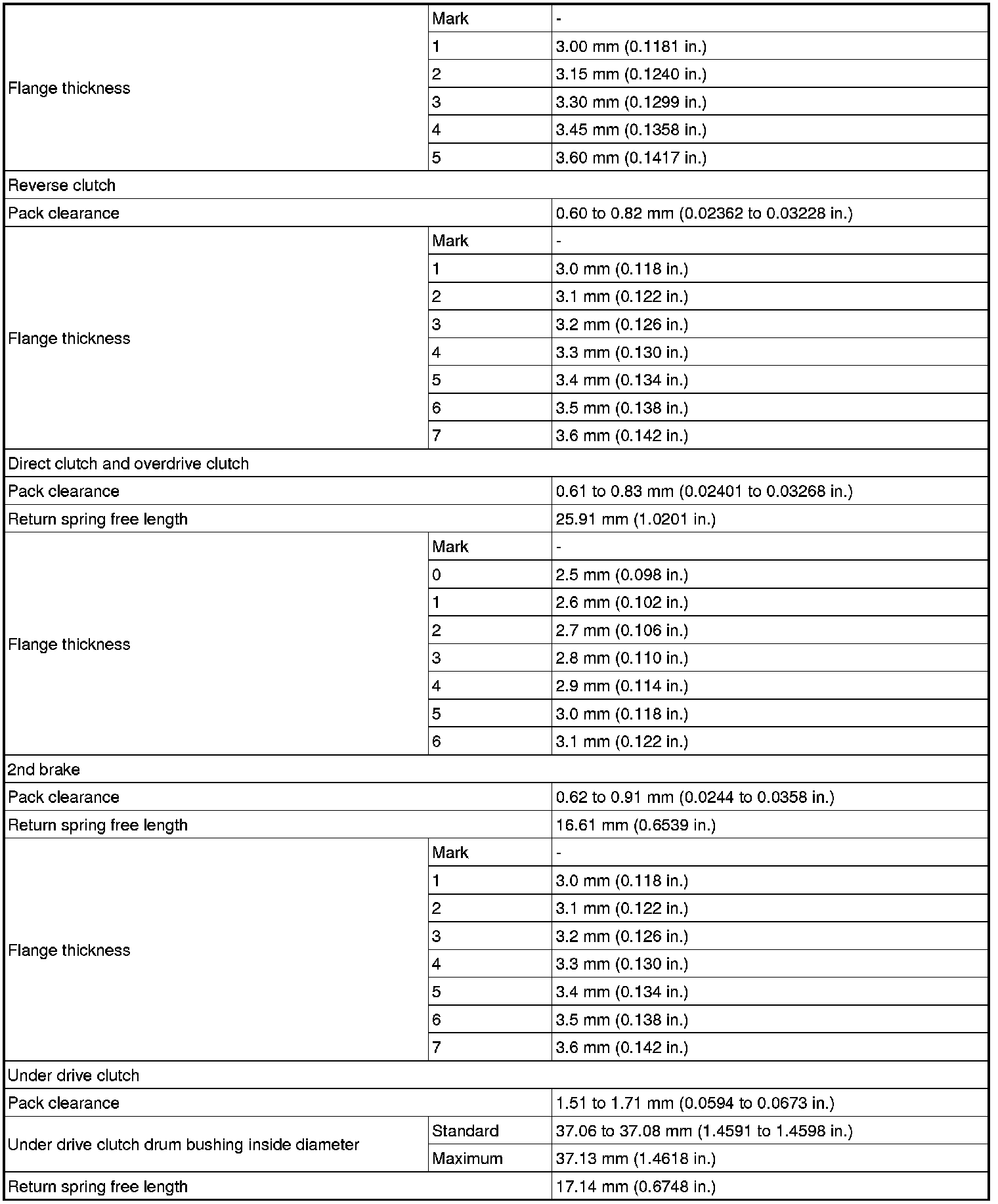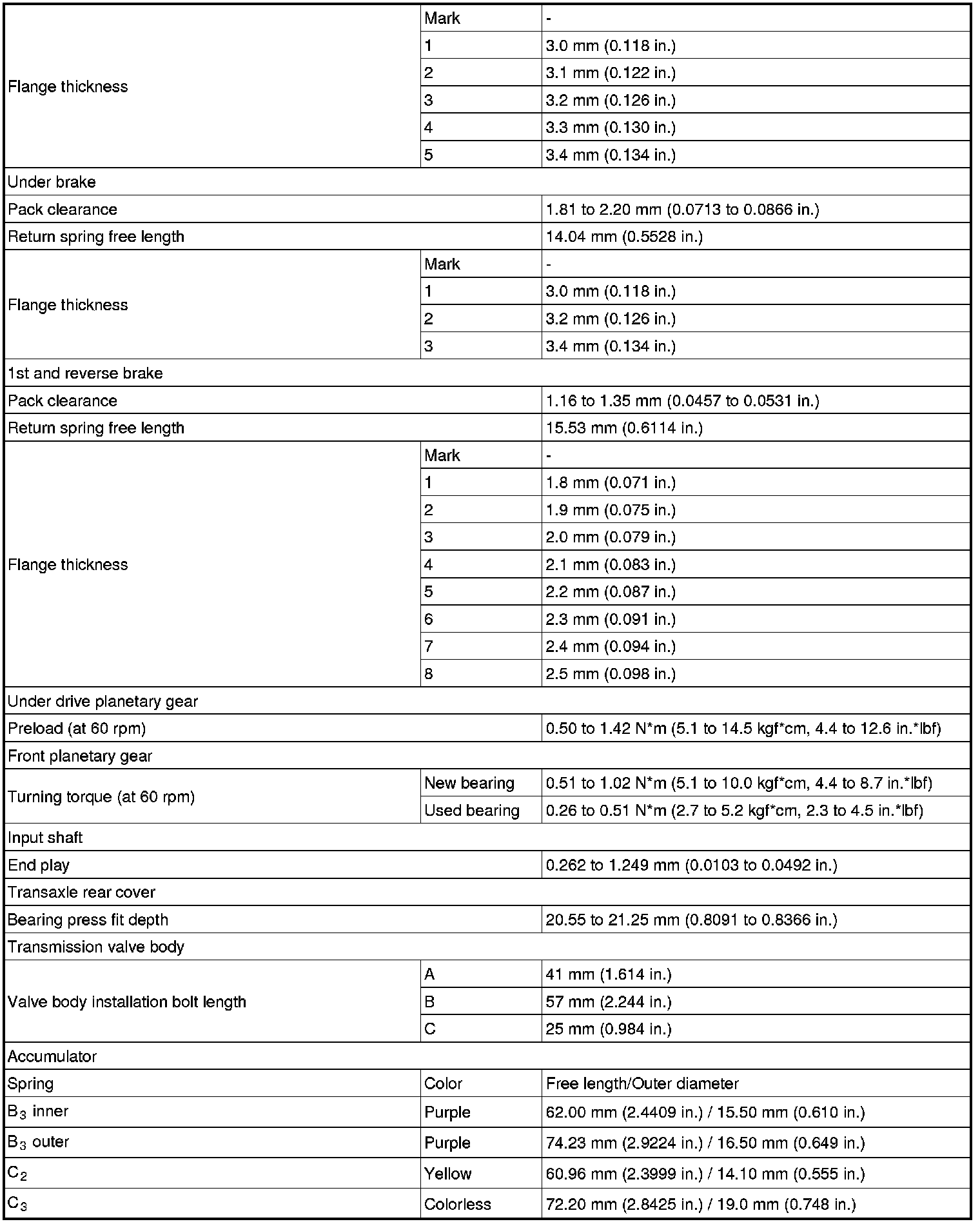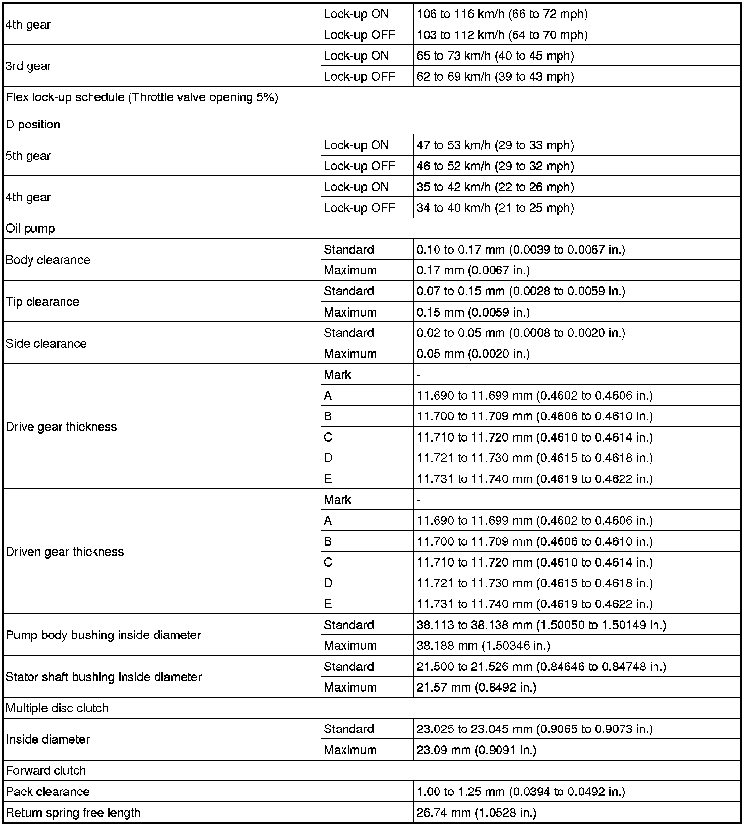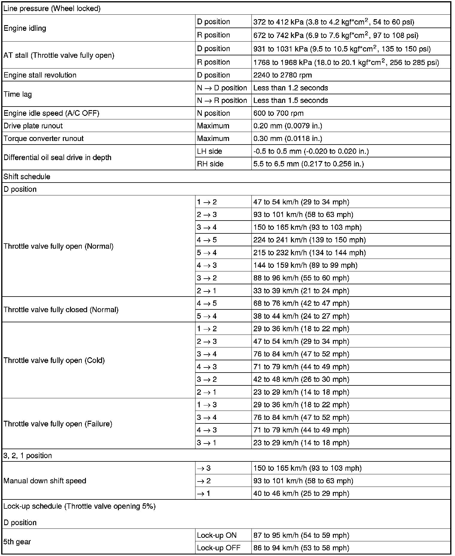 SERVICE SPECIFICATIONS: U151F AUTOMATIC TRANSAXLE: SERVICE DATA