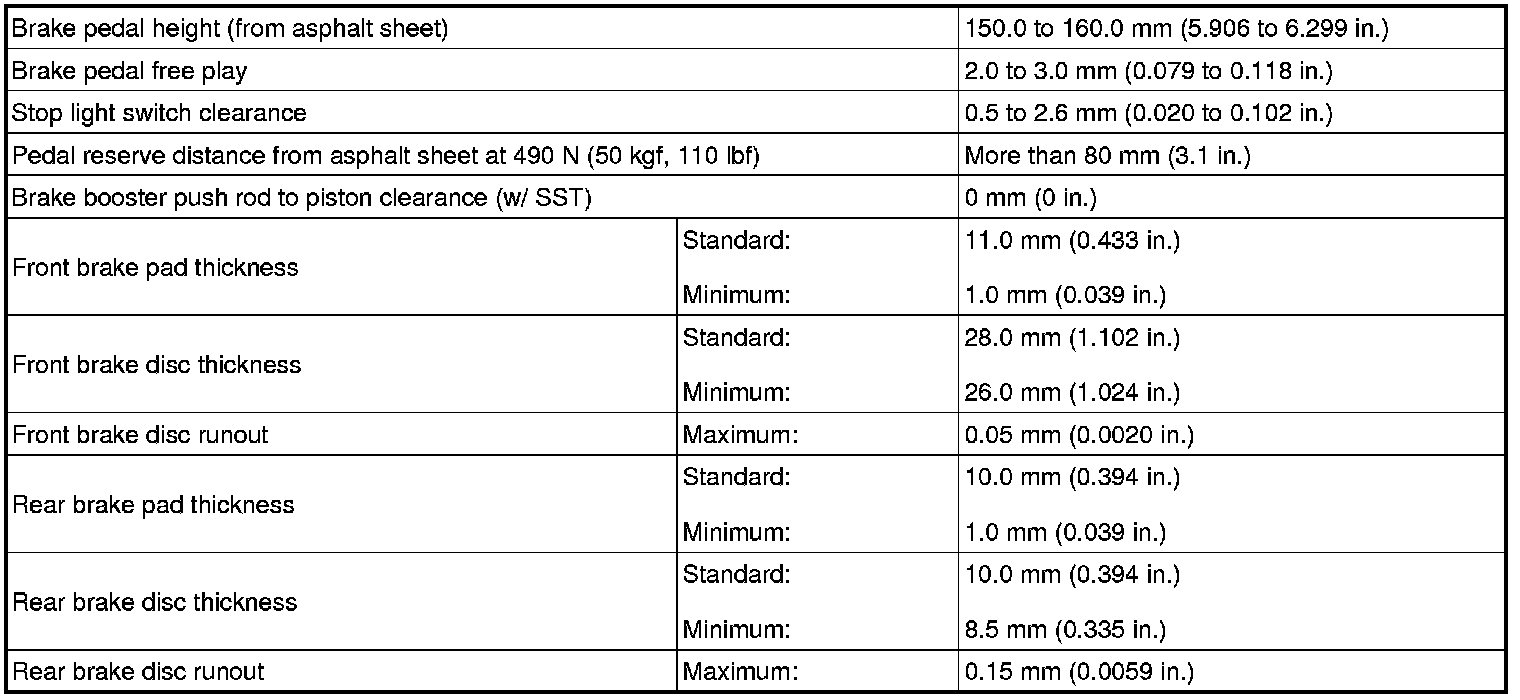 SERVICE SPECIFICATIONS: BRAKE: SERVICE DATA