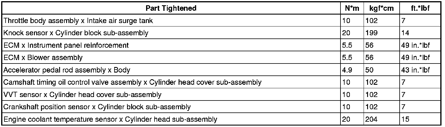 SERVICE SPECIFICATIONS: 2GR-FE ENGINE CONTROL SYSTEM: TORQUE SPECIFICATIONS