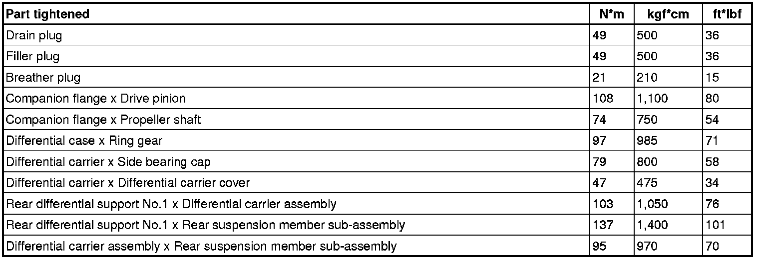 SERVICE SPECIFICATIONS: DIFFERENTIAL: TORQUE SPECIFICATIONS