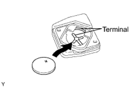(a) Install a new battery (lithium battery) with the positive (+) side up, as shown in the illustration.