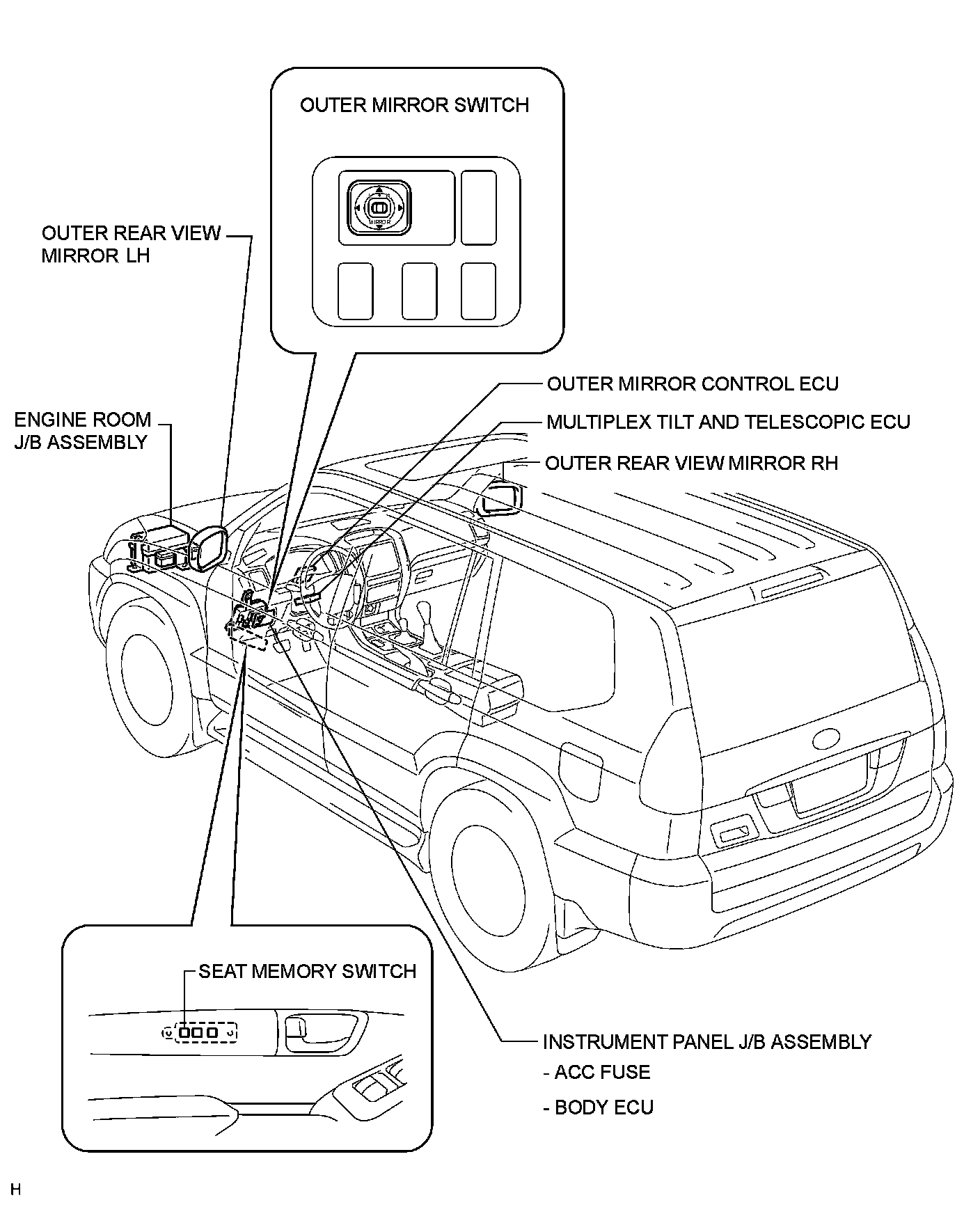 MIRROR: POWER MIRROR CONTROL SYSTEM (w/ Memory): PARTS LOCATION