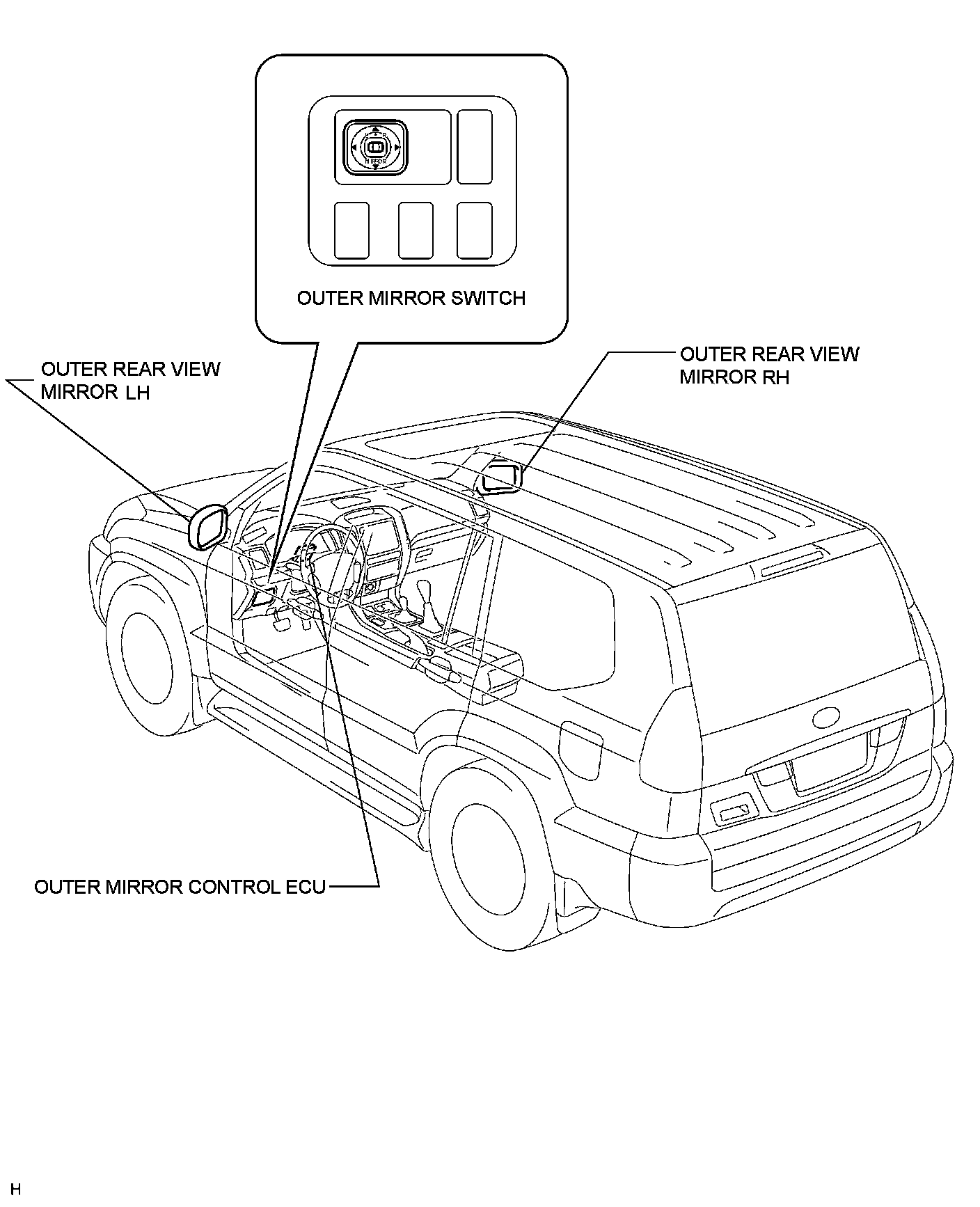 MIRROR: POWER MIRROR CONTROL SYSTEM (w/o Memory): PARTS LOCATION