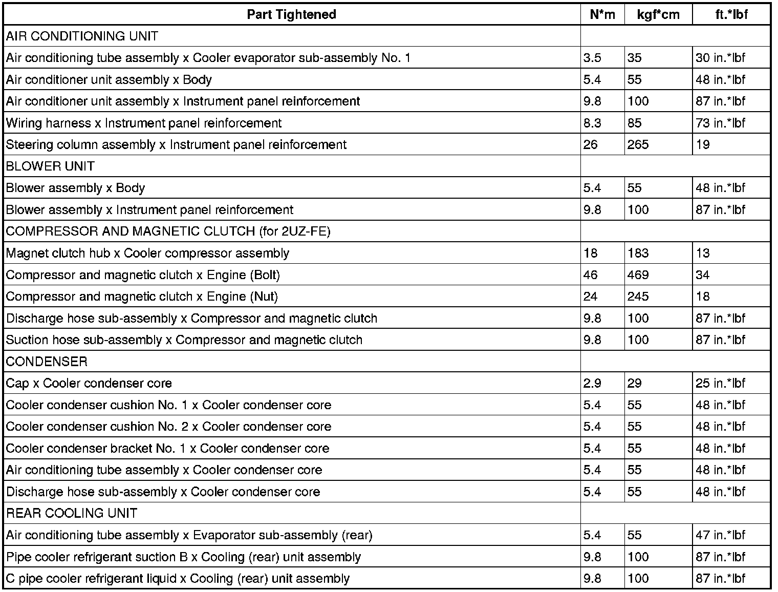 SERVICE SPECIFICATIONS: AIR CONDITIONING: TORQUE SPECIFICATIONS