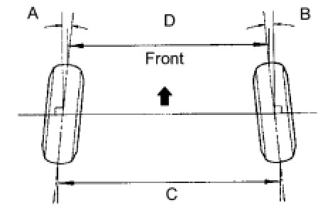 If the wheel angles differ from the standard of the specification, inspect the toe-in.