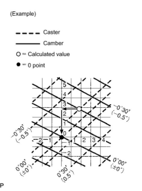 (3) As shown in the chart, read the distance from the marked point to 0 point, and adjust the front and/or rear adjusting cams accordingly.