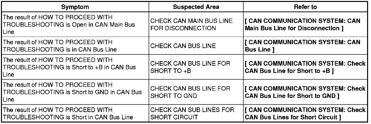 CAN COMMUNICATION: CAN COMMUNICATION SYSTEM: PROBLEM SYMPTOMS TABLE