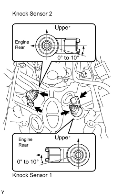 (a) Install the 2 knock sensors with the 2 nuts as shown in the illustration.