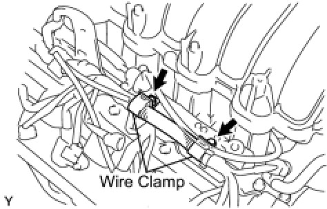 (j) Connect the 2 wire clamps to the wire clamp bracket on the RH delivery pipe.