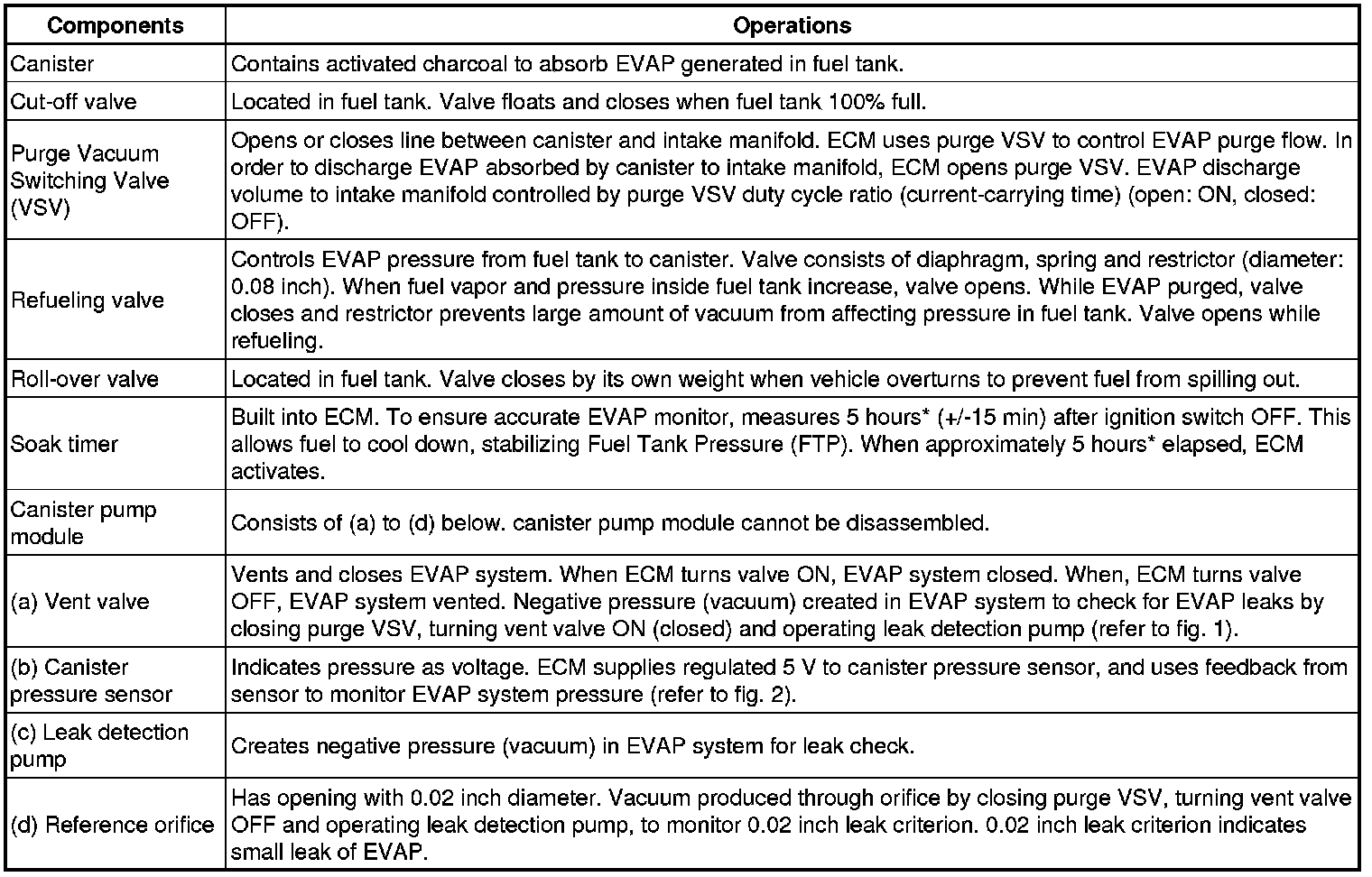 This monitor checks for Evaporative Emission (EVAP) system leaks and canister pump module malfunctions. The monitor starts 5 hours* after the ignition switch is turned OFF. More than 5 hours are required to allow the fuel to cool down to stabilize the Fuel Tank Pressure (FTP), thus making the EVAP system monitor more accurate.