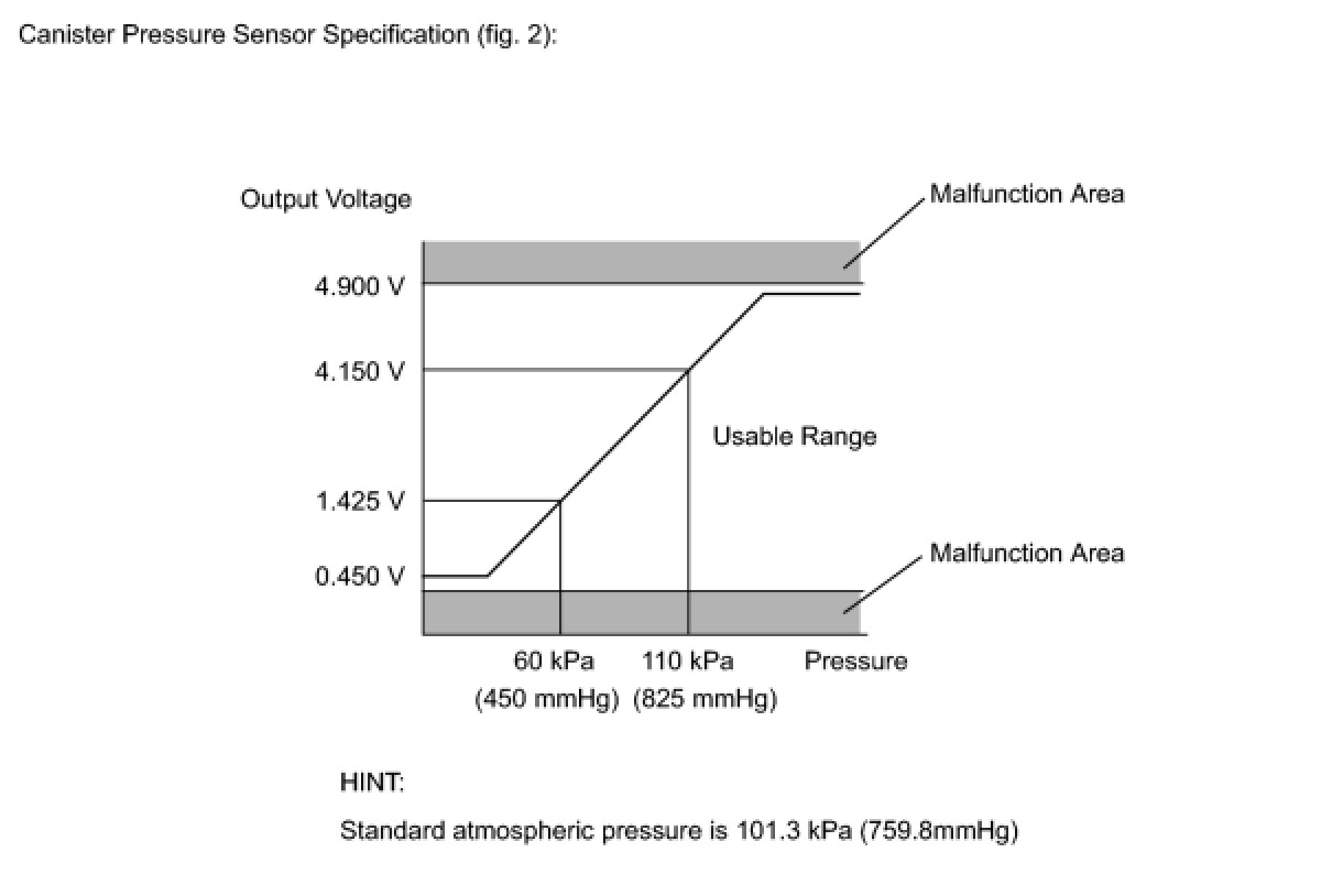 The vent valve turned ON (closed) and the EVAP pressure is then measured. If the variation in the pressure is less than 0.5 kPa (3.75 mmHg), the ECM interprets this as the purge VSV being stuck closed, and illuminates the MIL and sets DTC P0441 (2 trip detection logic).